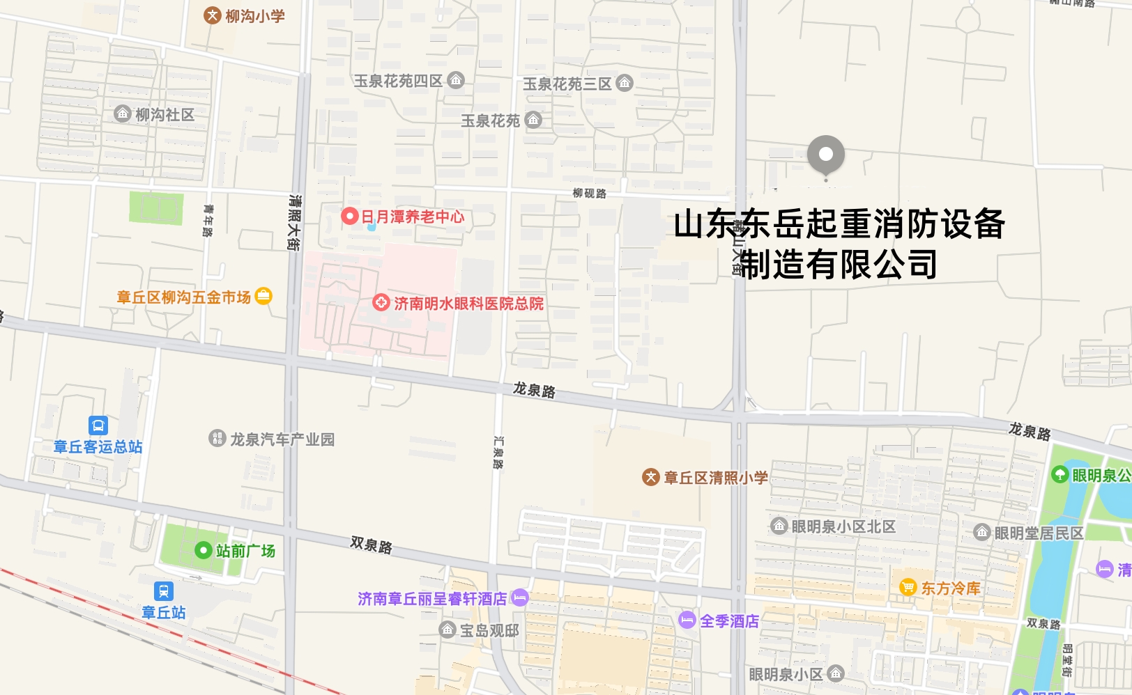 山东东岳起重消防设备制造有限公司位于济南东郊风景秀丽的小泉城章丘市。南依胶济铁路、北靠济青高速公路,交通便捷。本公司创建于 2001 年,占地面积67932 平方米,钢结构标准化生产厂房15641 平方米。